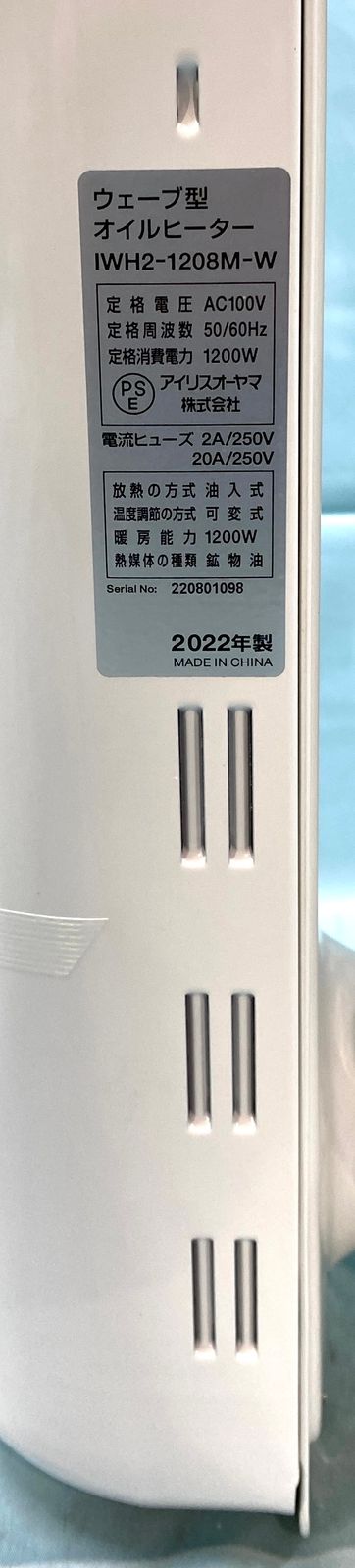【開封済・未使用品】アイリスオーヤマ ウェーブ型オイルヒーター IWH2-1208M-W 3020260216144 ※参考価格:11000円(税込)
