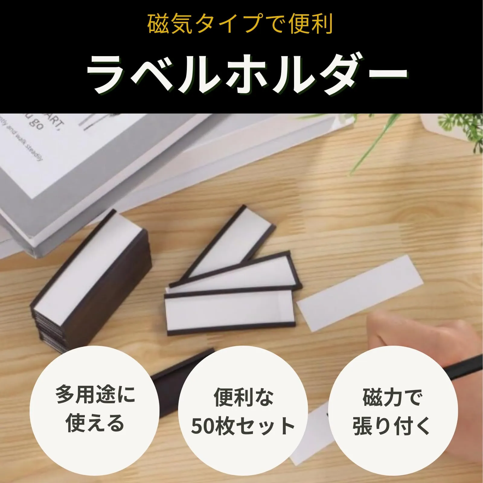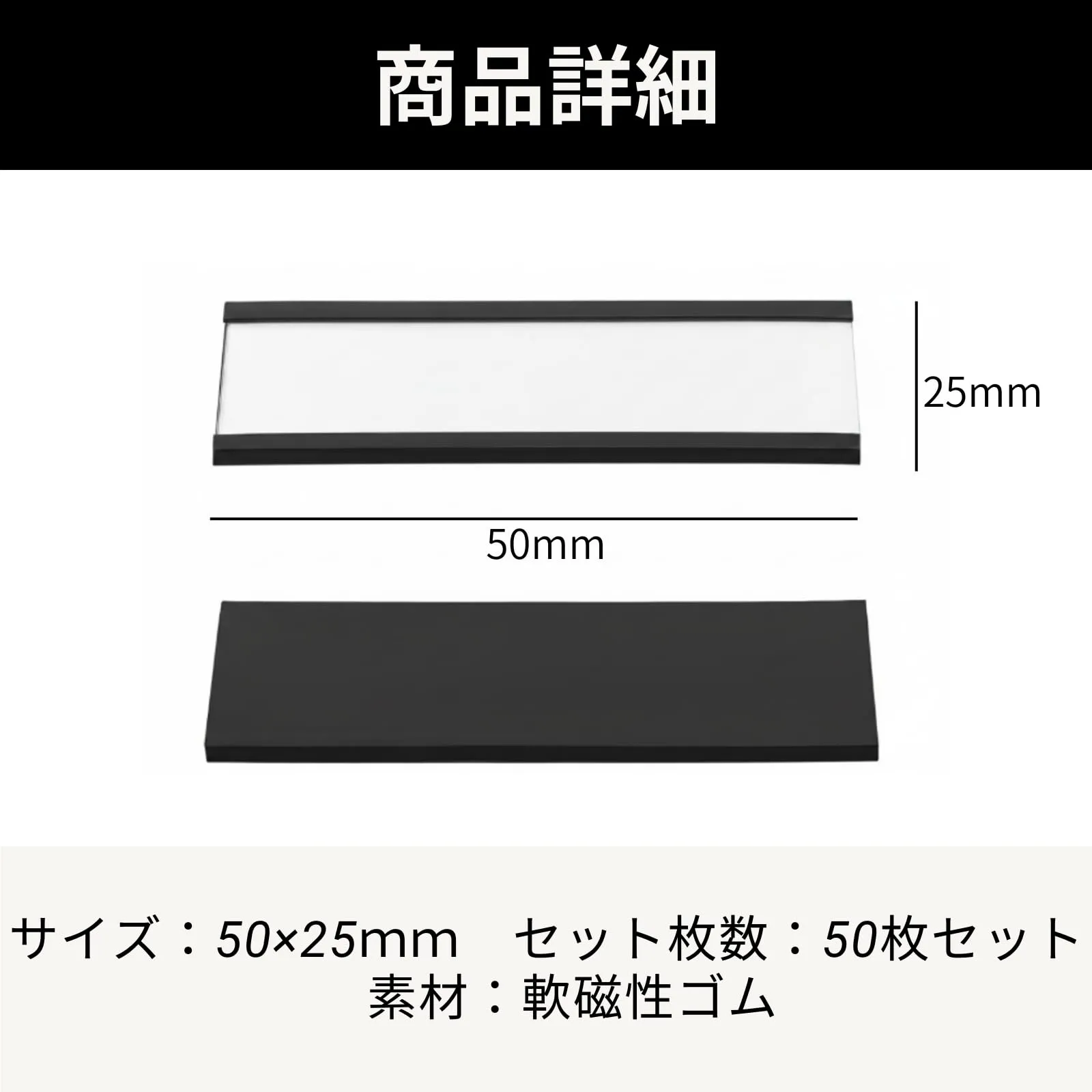 azumafy 磁気 ラベルホルダー 磁石 名前 プレート ネーム 50枚セット 5×2.5cm マグネット式 タグ 冷蔵庫