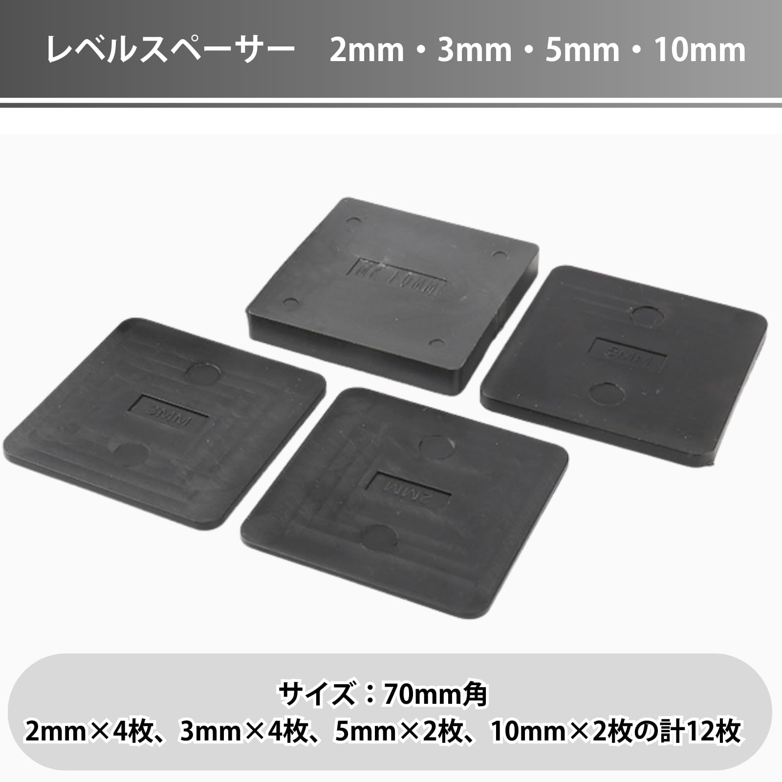 Aurenne レベルスペーサー 高さ調整 机 テレビ台 かさ上げ ガタつき 防止 屋外 家具脚 70×70mm 厚さ2/3/5/10mm 12枚 [12]