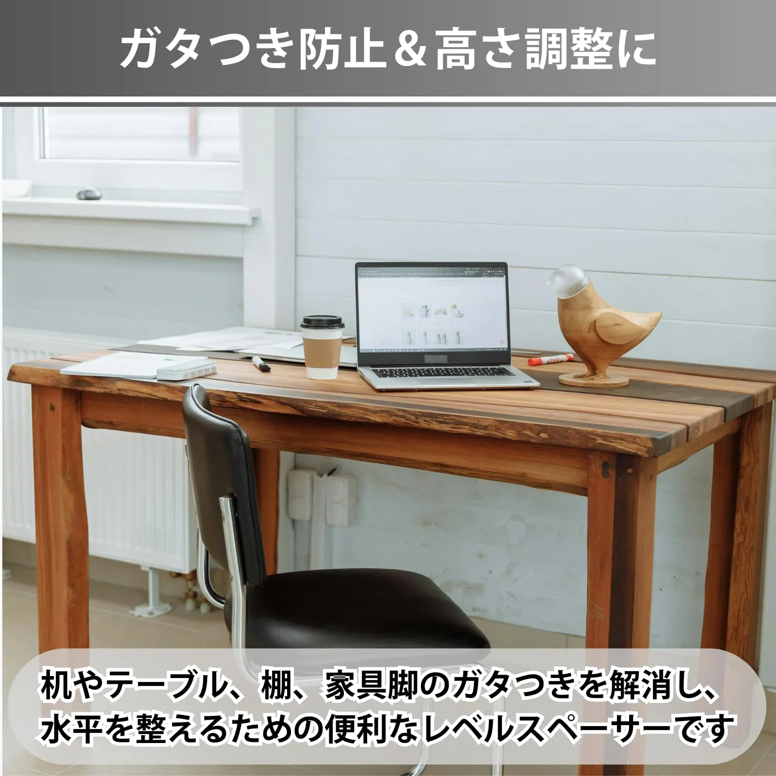 【ガタつき防止&高さ調整に】 机やテーブル、棚、家具脚のガタつきを解消し、水平を整えるための便利なレベルスペーサーです。