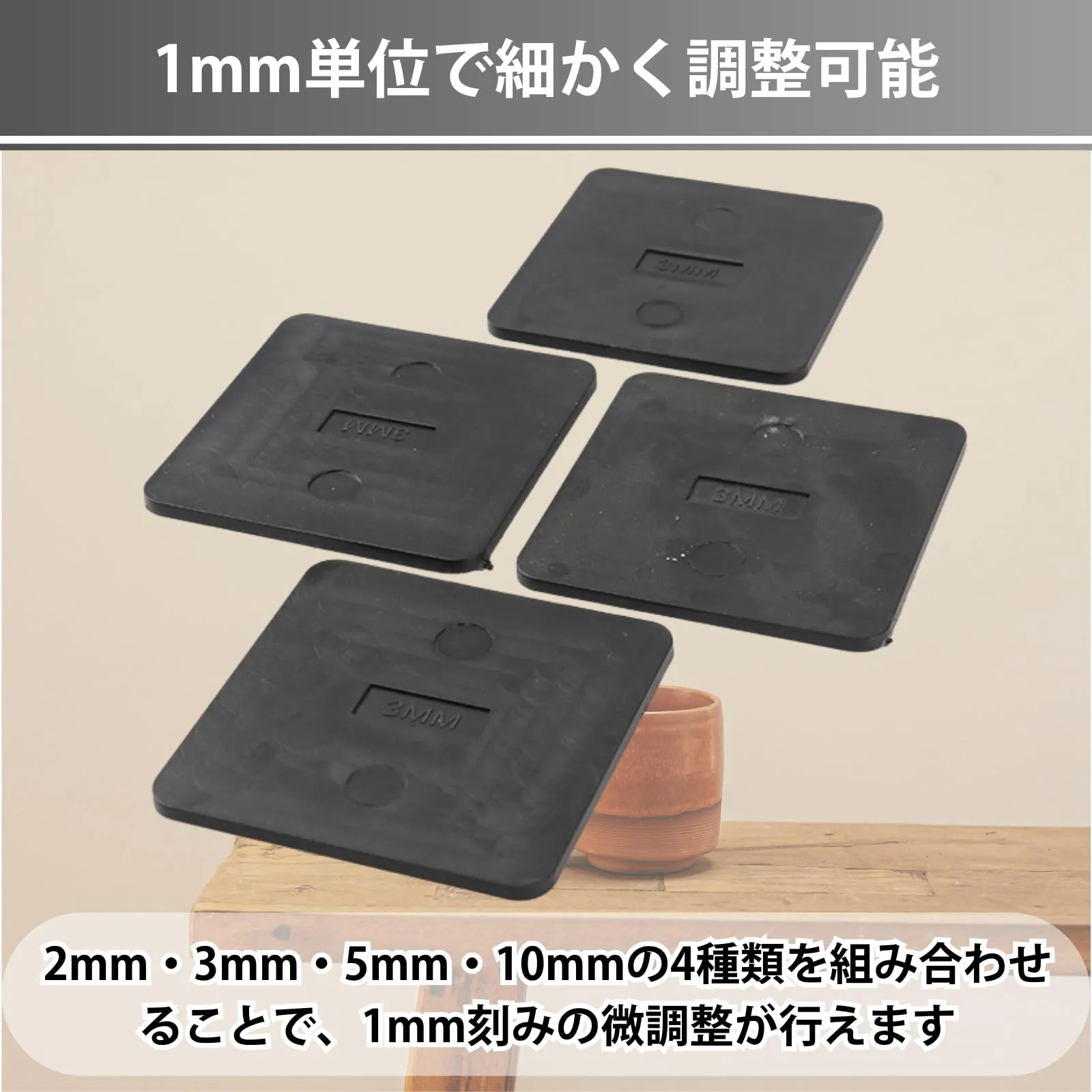 【1mm単位で細かく調整可能】 2mm・3mm・5mm・10mmの4種類を組み合わせることで、1mm刻みの微調整が行えます。