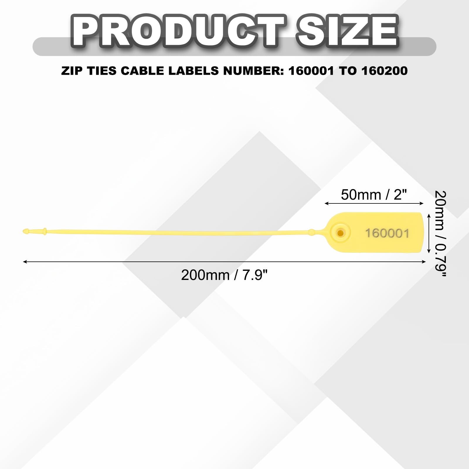 新品 PATIKIL 200個 プラスチック封印 プラスチックセキュリティ封印使い捨て番号付きジップタイ安全タグケーブルラベル自己ロック在庫ラベリング衣類看板しゅっか イエロー
