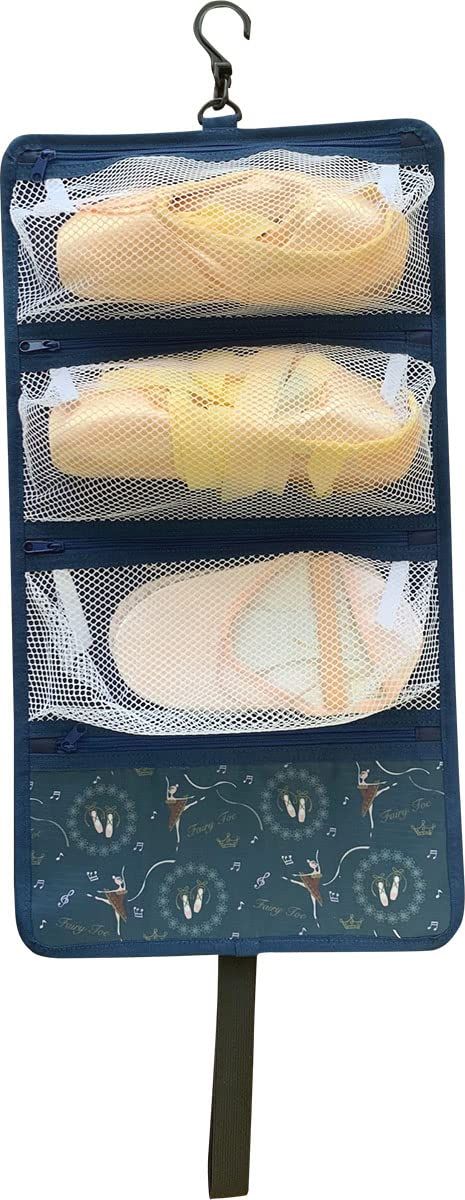 新品 ニックナック 4連トウシューズケース ネイビー バレエ バレリーナ 可愛い コンパクト収納 ニオイ低減 サイズ:広げた状態:W28×H52cm