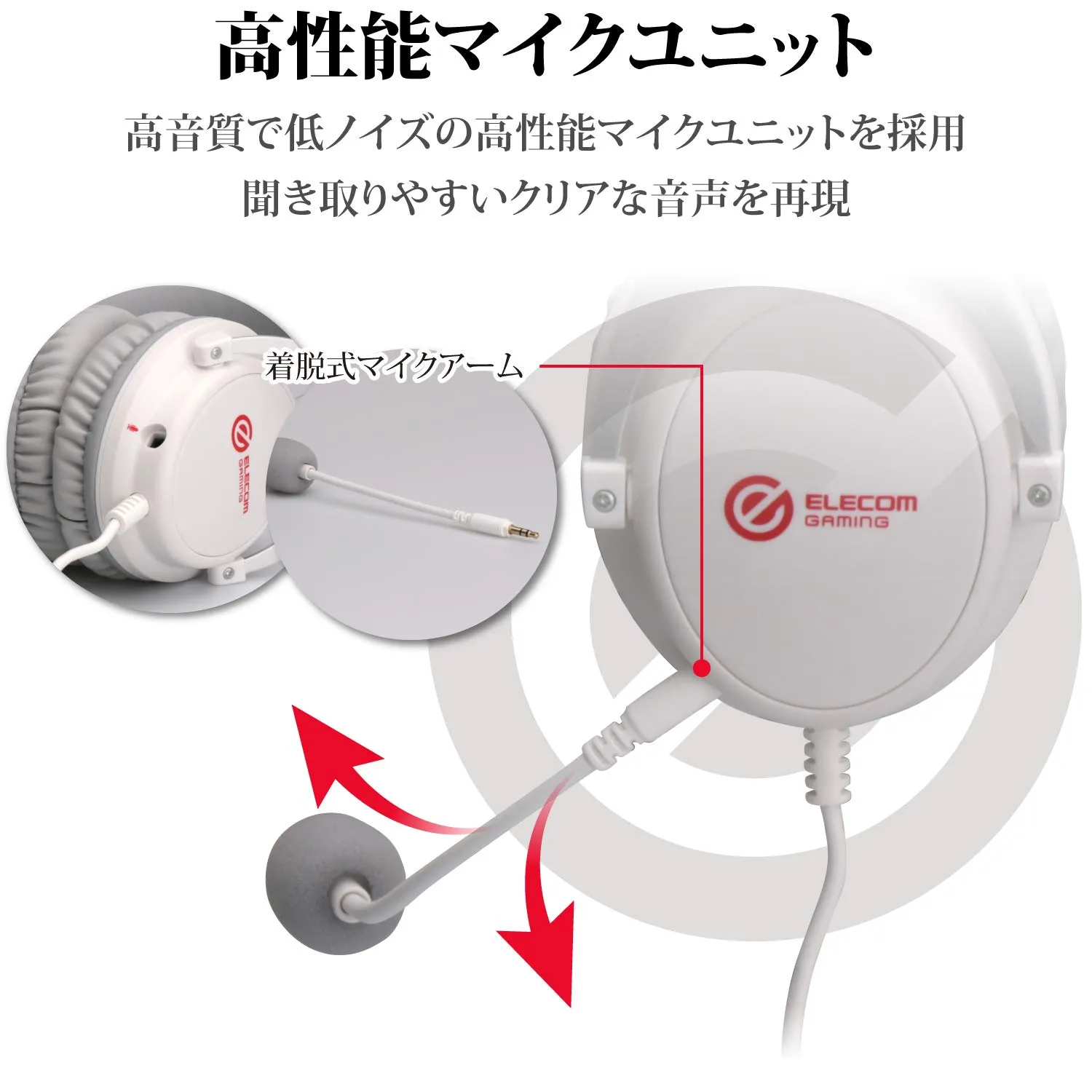 ■収納の際にも便利な着脱式マイクアームを搭載し、マイクを外せば普通のヘッドホンとしても使用可能です。