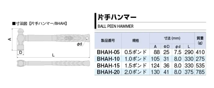 【新品・2営業日で発送】TONE 片手ハンマー 頭径25mm 頭長88mm 全長290mm (BHAH05 8100)