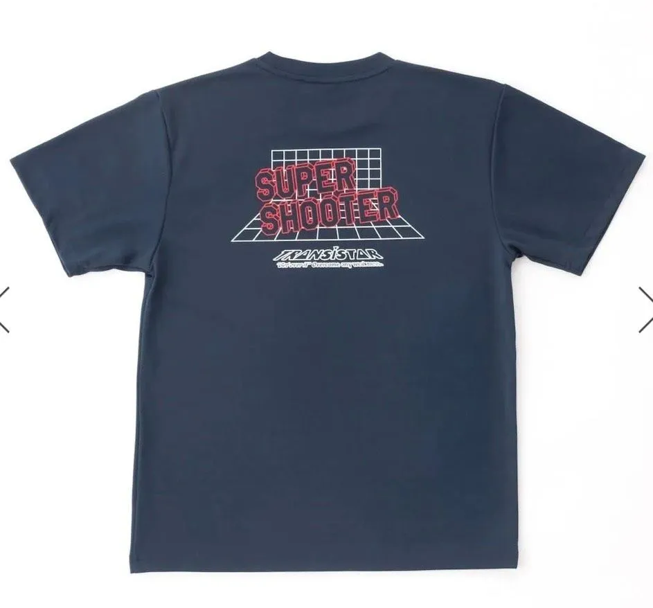 【商品説明】レトロゲームのオープニングタイトルのようなデザインで着る人がワクワクするような遊び心です。super shooterのロゴが傾いているのは ゴールに向かってシュートしている人を抽象的に表現したデザインです。