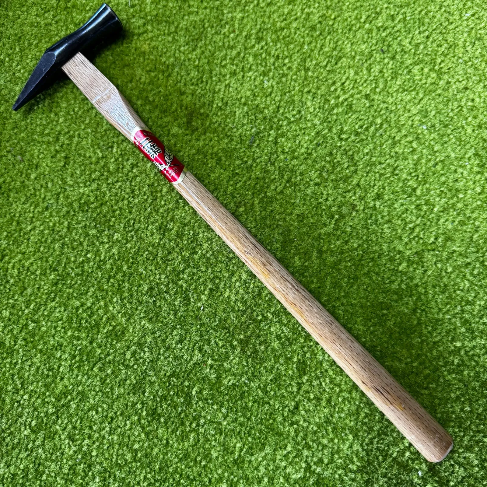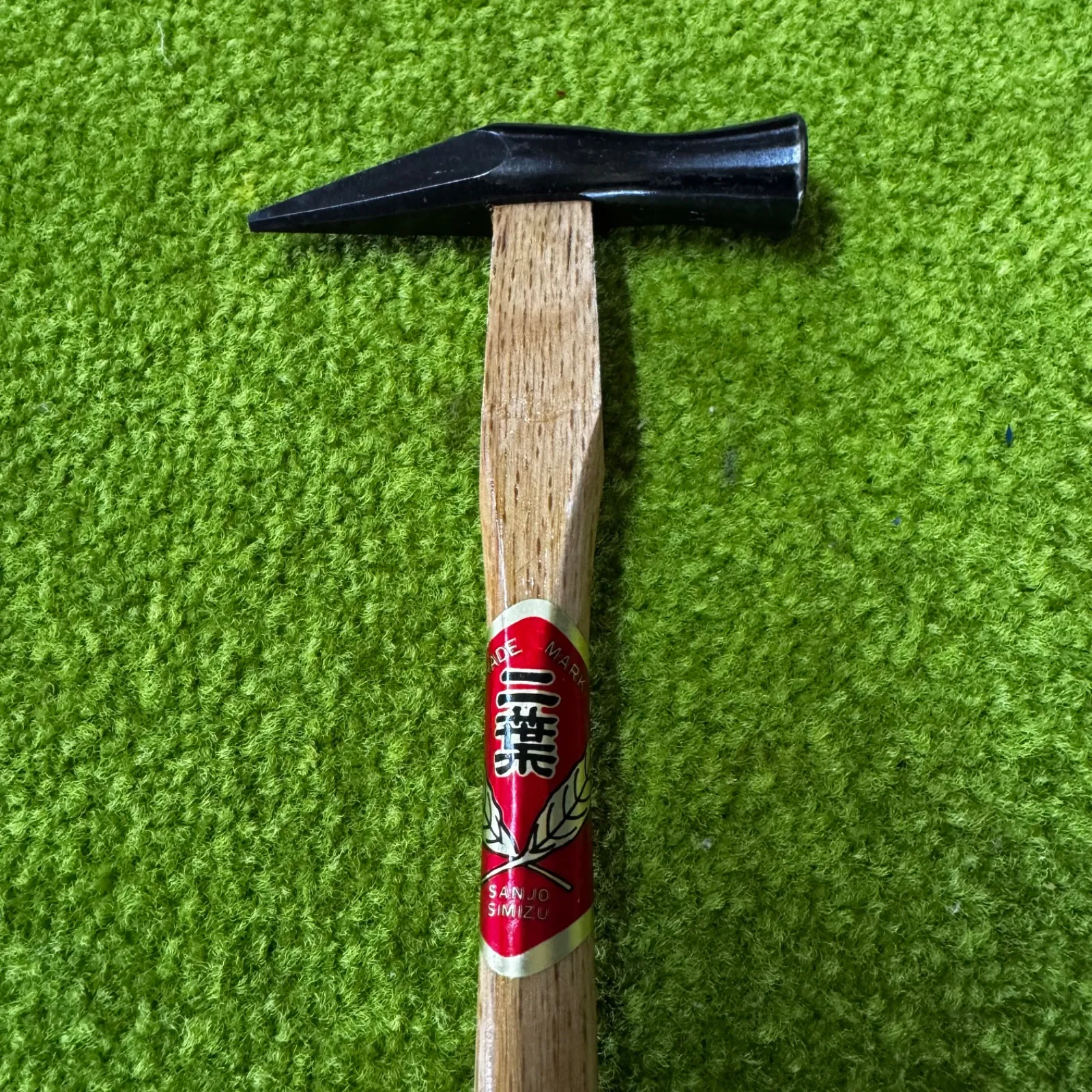 【職人の街・三条の逸品】希少なデッドストック、清水製作所「二葉」銘の先切りハンマー。 新潟県三条市の伝統的な名門、清水製作所による「二葉(ふたば)」ブランドの先切りハンマーです。 今では入手が非常に困難な当時の未使用・デッドストック品。 ヘッドから柄の先に至るまで、当時の高い技術力が凝縮された一級品です。
