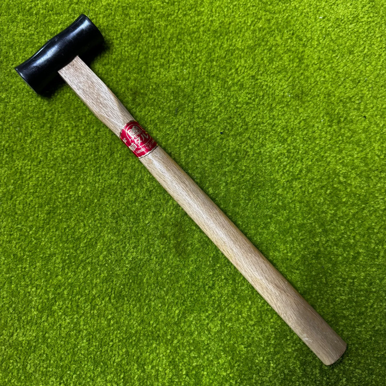 【職人の街・三条が生んだ銘品】希少なデッドストック、三興「菊ダルマ」印の両口玄能。 金物の聖地・新潟県三条市にて、確かな品質を誇る三興(SANKO SANJO)が手掛けた「菊ダルマ」ブランドの玄能です。 だるまの意匠が施された当時の赤いラベルが残る、貴重な未使用・デッドストックコンディション。 重心バランスに優れ、一打ちごとに職人のこだわりを感じさせる逸品です。