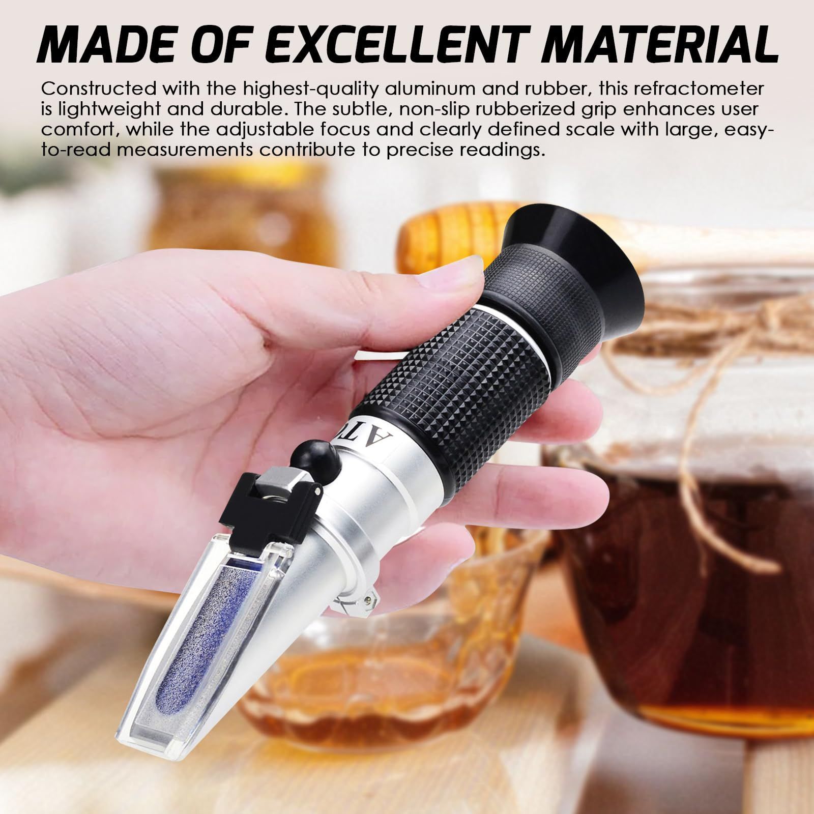 品質と軽量:屈折計は最高品質のアルミニウムとゴムで作られています。