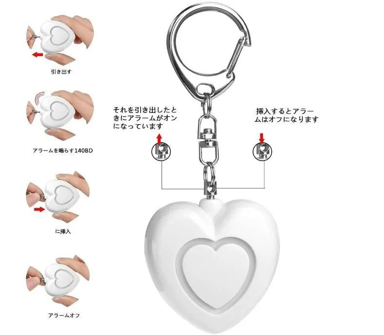 ■こちらの商品は沖縄・離島は配送料が異なります。 ご購入前にお知らせください。 お住まいの地域に合わせた専用ページを作成いたします。 防犯ブザー ハート型 防犯アラーム 大音量 130db 小型LEDライト付き 品番:meinuo01 カラー:ピンク、ホワイト、ブラック、レッド サイズ:F 電池:3アルカリボタン電池(付属)