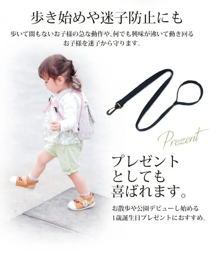 急な飛び出しや迷子等を、完全に防止するものでは御座いませんので使用中に限らずお子様から目を離さないで下さい。紐がお子様の体や首に巻き付かないようお気をつけ下さい。