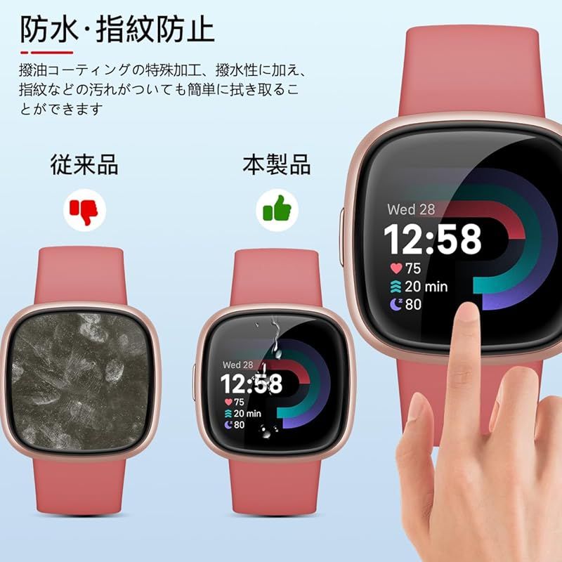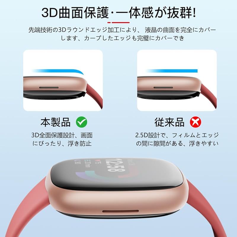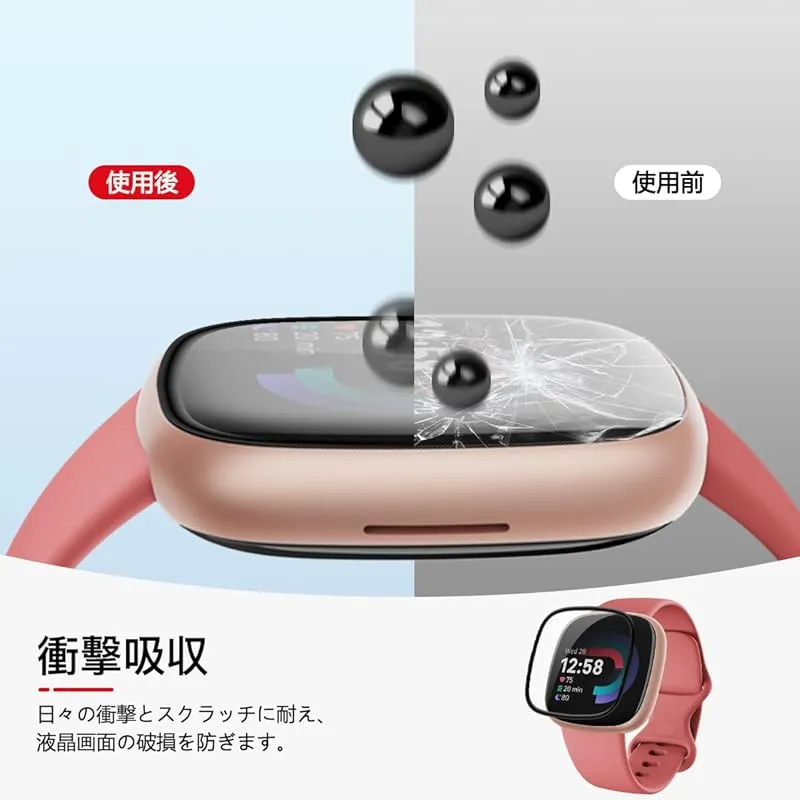 【3D曲面加工・全面保護】先端技術の3Dラウンドエッジ加工により、 液晶の曲面を完全にカバーします、カーブしたエッジも完璧にカバーでき。従来の2.5Dラウンドエッジ製品よりフィット感が良いです。Fitbit Versa4 / Fitbit Sense2を全面保護し、角割れも防止します。これはスクリーンに最大のカバー範囲を提供するために設計されました。 ★