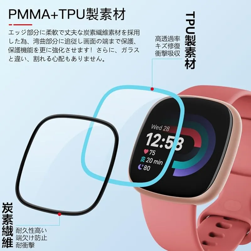 対応 Fitbit Versa4 / Fitbit Sense2 フィルム 【3枚セット】 対応 Fitbit Versa4 / Fitbit Sense2 スマートウォッチ 保護フィルム 液晶保護フィルム 柔軟なTPU製 炭素繊維 3D曲面 カバー 24 1