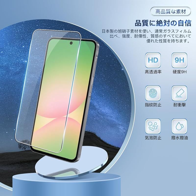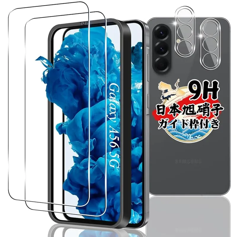 【ガイド枠付き】 対応 Galaxy A56 5G ガラスフィルム 2枚 + カメラフィルム2枚 【4枚セット 日本旭硝子製】 対応 ギャラクシー A56 5G フィルム 強化ガラス 液晶 保護フィルム ケース 指紋認証対応 硬度9H 耐衝撃 飛散防止 高 1