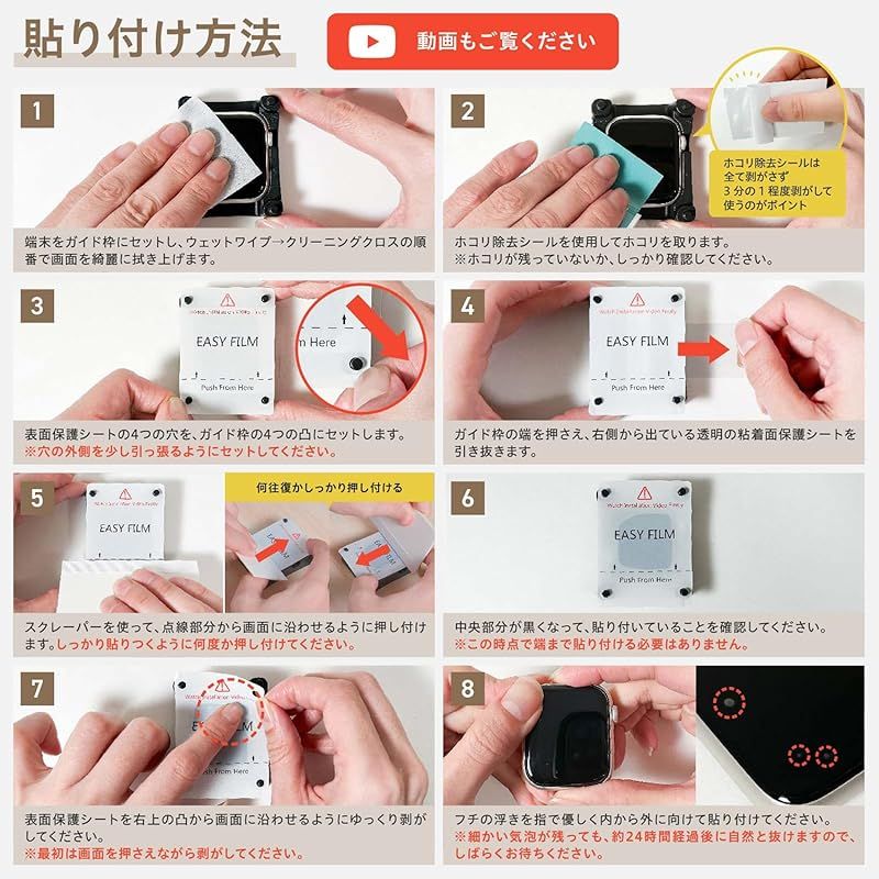【貼り付けマニュアルについて】:貼り付け方法は動画をご準備しておりますので、「モンスターフィルム AppleWatch用 貼り付けマニュアル」をご覧ください。 ???