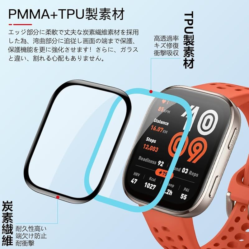 対応 Amazfit Bip 6 1.97インチ フィルム 画面保護フィルム 【3枚セット】 対応 Amazfit Bip6 保護フィルム 液晶保護フィルム 柔軟なTPU製 炭素繊維 3D曲面 カバー 24時間自動修復技術 衝撃吸収 高透過率 高感度タッチ 0