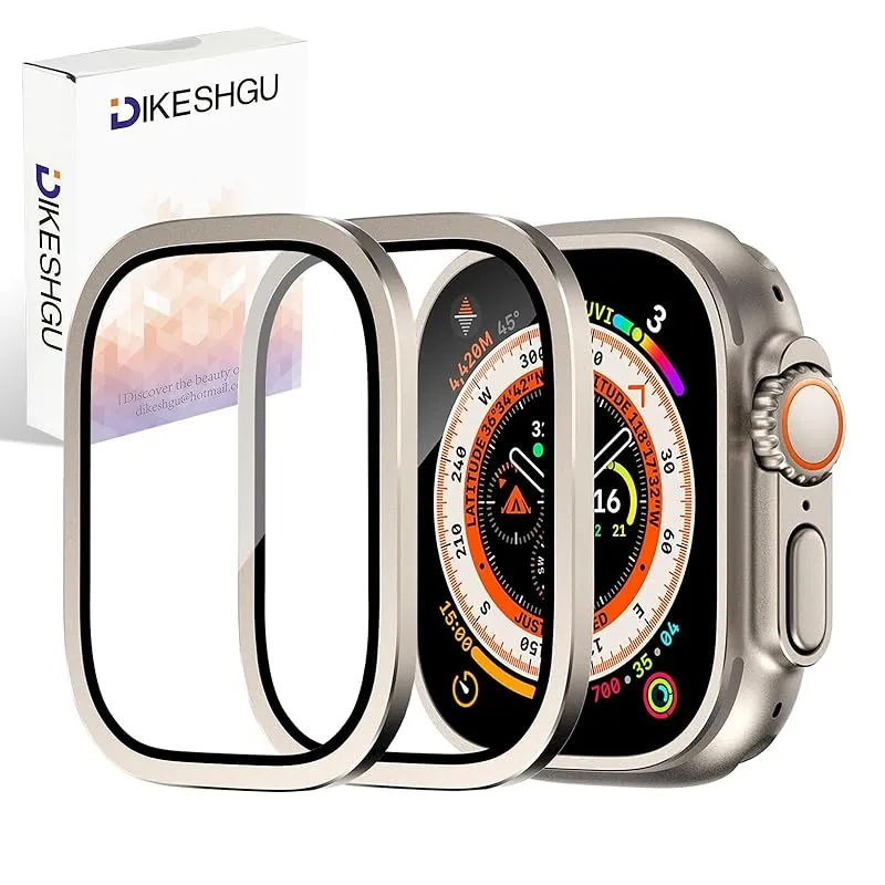 【ステンレススチールフレーム+強化ガラスフィルム 一体型】 全面保護 アップルウォッチ Ultra 49mm 画面保護カバー 耐傷性 製造元:Dikeshgu 商品番号:M-AWF-49-THJ-TJ-NO 商品内容:49mm 色:チタンカラー