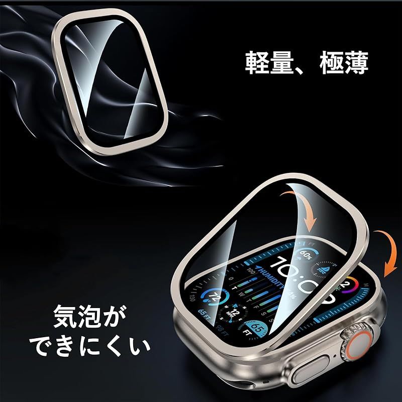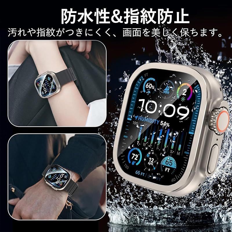 【ステンレススチールフレーム+強化ガラスフィルム 一体型】 全面保護 アップルウォッチ Ultra 49mm 画面保護カバー 耐傷性 指紋防止 (2枚セット,チタンカラー)