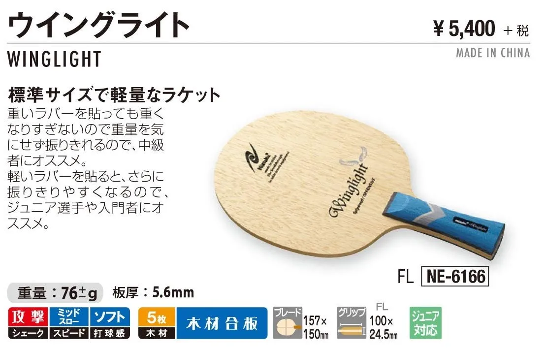 新品 ニッタク(Nittaku) 卓球 ラケット ウイングライト シェークハンド 攻撃用 5枚合板 フレア NE-6166