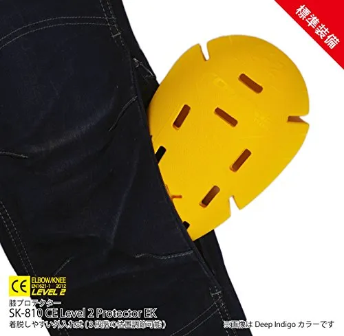 普段着同様に履くだけで手軽にプロテクターを装着できるストレッチスキニージーンズ。 両膝にレベル2CE規格プロテクターを標準装備。お求めやすい価格でエントリーライダーにもおすすめの一本。伸縮性のあるストレッチデニムにより、プロテクター装備でも普段着と変わらないはき着心地。プロテターを着脱しやすい外入れ式。裾裏のリフレクターはロールアップすることで使用可能。 膝プロテクターはハードタイプ(SK-635/別売)も使用可能