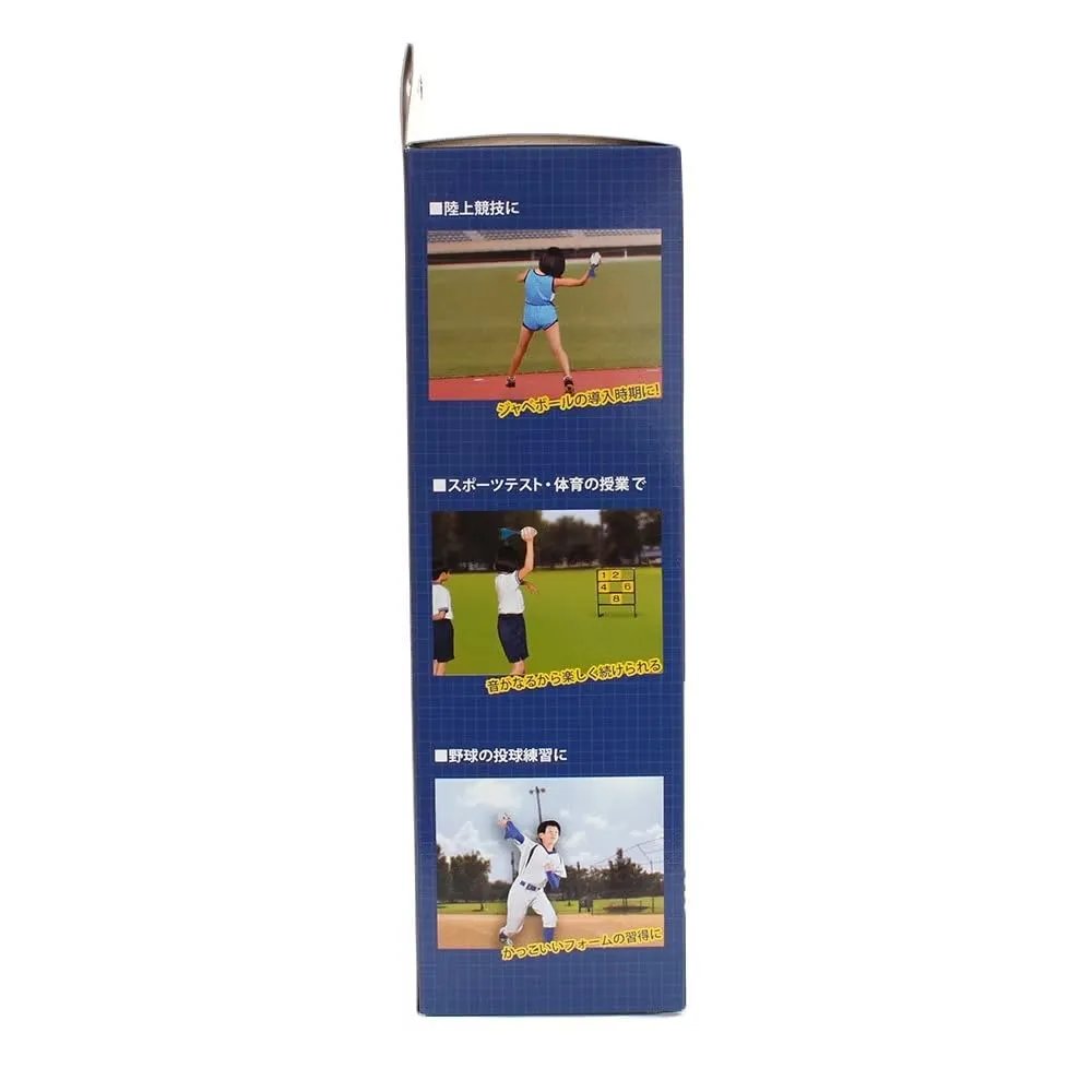 ジャベボール投の導入段階におけるトレーニングボールです。使用対象となる小学校低学年層と高学年層の体格差を考慮したサイズ設定することで「ジャベボール」へのスムーズな移行が図れます。腕と肩甲骨を大きく動かし楕円形のボールを投げることで、身体全体を大きく使った投げ動作を身に付けることを目的にしています。「投げる力」を向上させる効果が期待できます。投げたときの速度が速いほどホイッスル音が大きく響くので、投げた方向への注意喚起をしながら、投げる楽しさも味わうことができます。