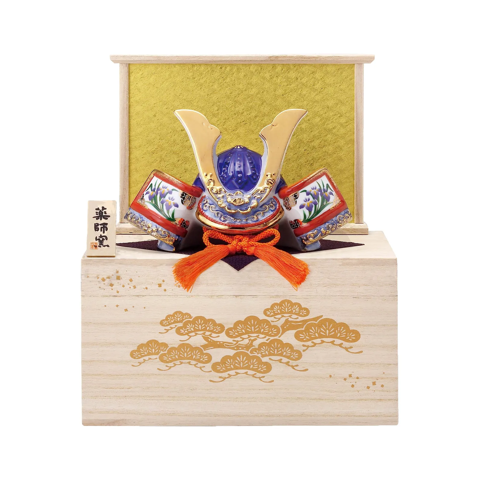 新品 [薬師窯] 五月人形 日本製 端午の節句 ミニ コンパクト 手のひらサイズ 陶器 染錦 出世兜(尚武大・収納桐箱台付)