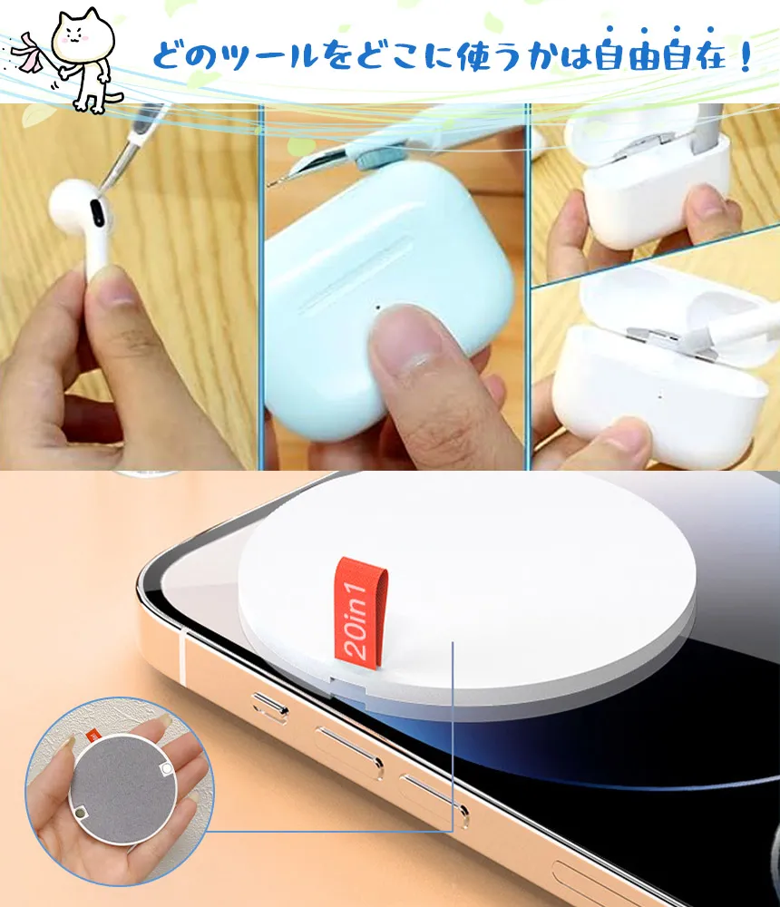 【サイズ】 本体(ケース):6×6×9cm 重量:約130g ※日本語取扱説明書、撮影用小物類などは付属しておりません。 ※簡易包装でのお届けとなります。 ※モニターにより色合いが若干違いが生じる場合がございます。 ※デザインは入荷時期により若干変化する場合がございます ※海外製造品のため、多少の匂い軽微な傷や汚れ、個体差等ある場合がございます。 ※商品の使用により生じた如何なる損害・被害も弊社では一切の 責任を負いかねますので予めご了承ください。 ※発送方法について:お届け先、個数によって配送情報に記載の配送業者とは異なる場合がございます。日本郵便、佐川急便、ヤマト運輸、またはセイノーエクスプレス(大型商品)でお届けいたします。なお、配送業者はお選びいただけませんので、ご了承ください。 [関連ワード] クリーニングツール 掃除道具 ヘッドフォン Bluetoothイヤホン Airpods 掃除キット メンテナンス用品 キーボードクリーナー ブロワー スプレーボトル 隙間 溝 ミニブラシ キープラー キーキャップ 交換 取り外し 引き抜き 付け替え スクリーン モニター コンパクト 小型 持ち運び 軽量 指紋除去 ホワイト 白 ブラック 黒