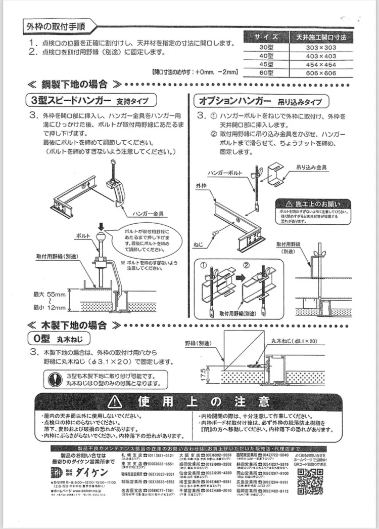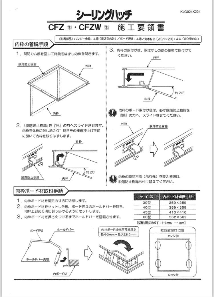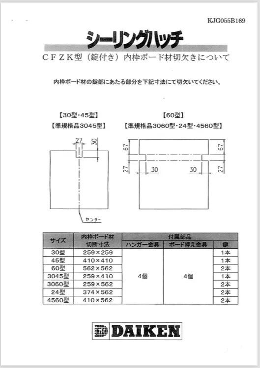 新品未使用 ダイケン CFZ345K 鍵付き シーリングハッチ 天井点検口