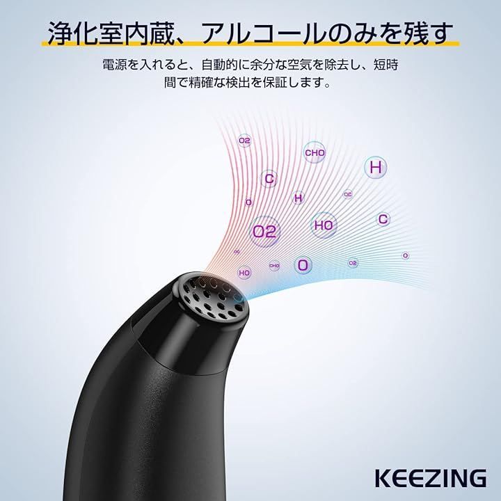 KEEZING アルコールチェッカー 日本製センサー 5000回 USB充電式 アルコール検知器 非接触型 アルコールテスター 高精度 業務用 アルコール測定器 吹込式 アルコール検査機 アルコールチェック LEDディスプレイ (ブラック)