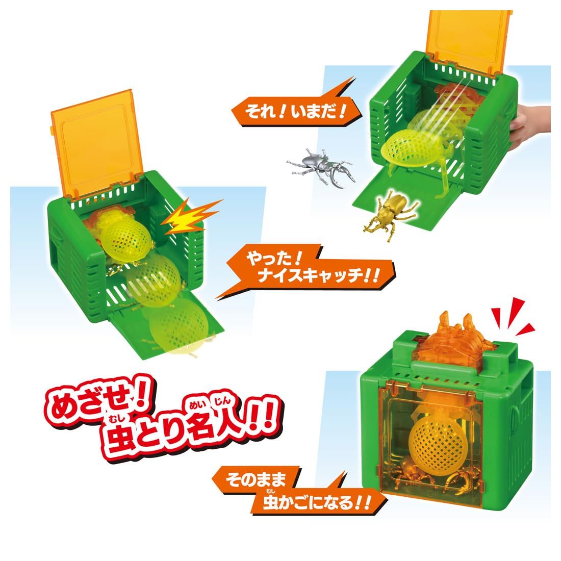 キャッチした昆虫アニアは、そのままケースに収納できて、ふたを閉じると虫かご風のケースになります。