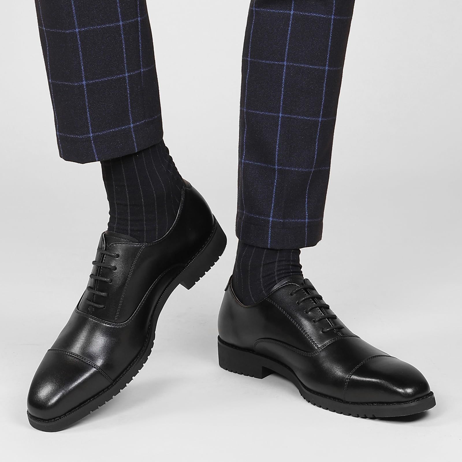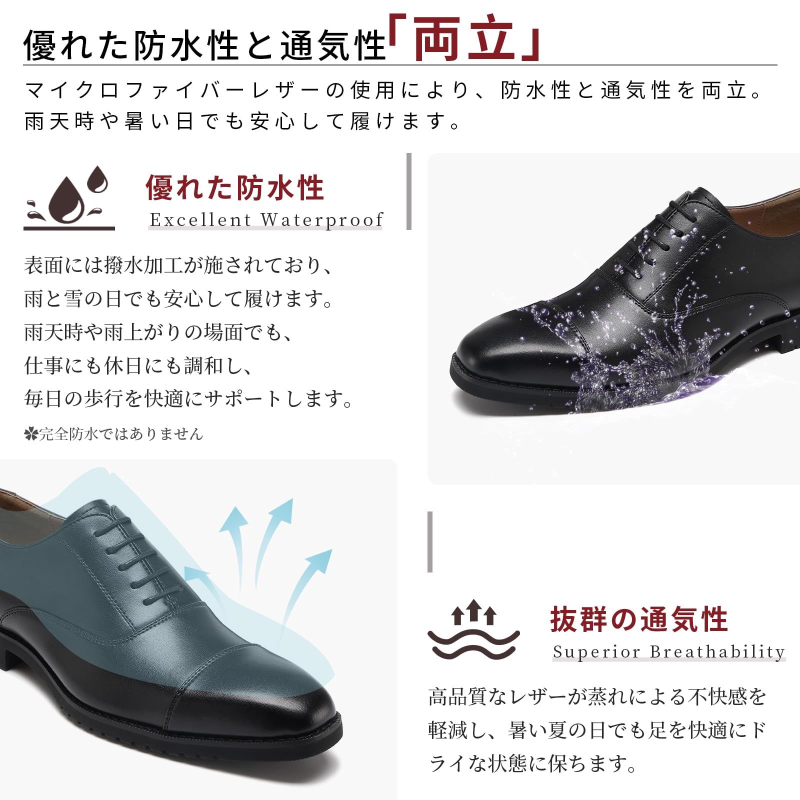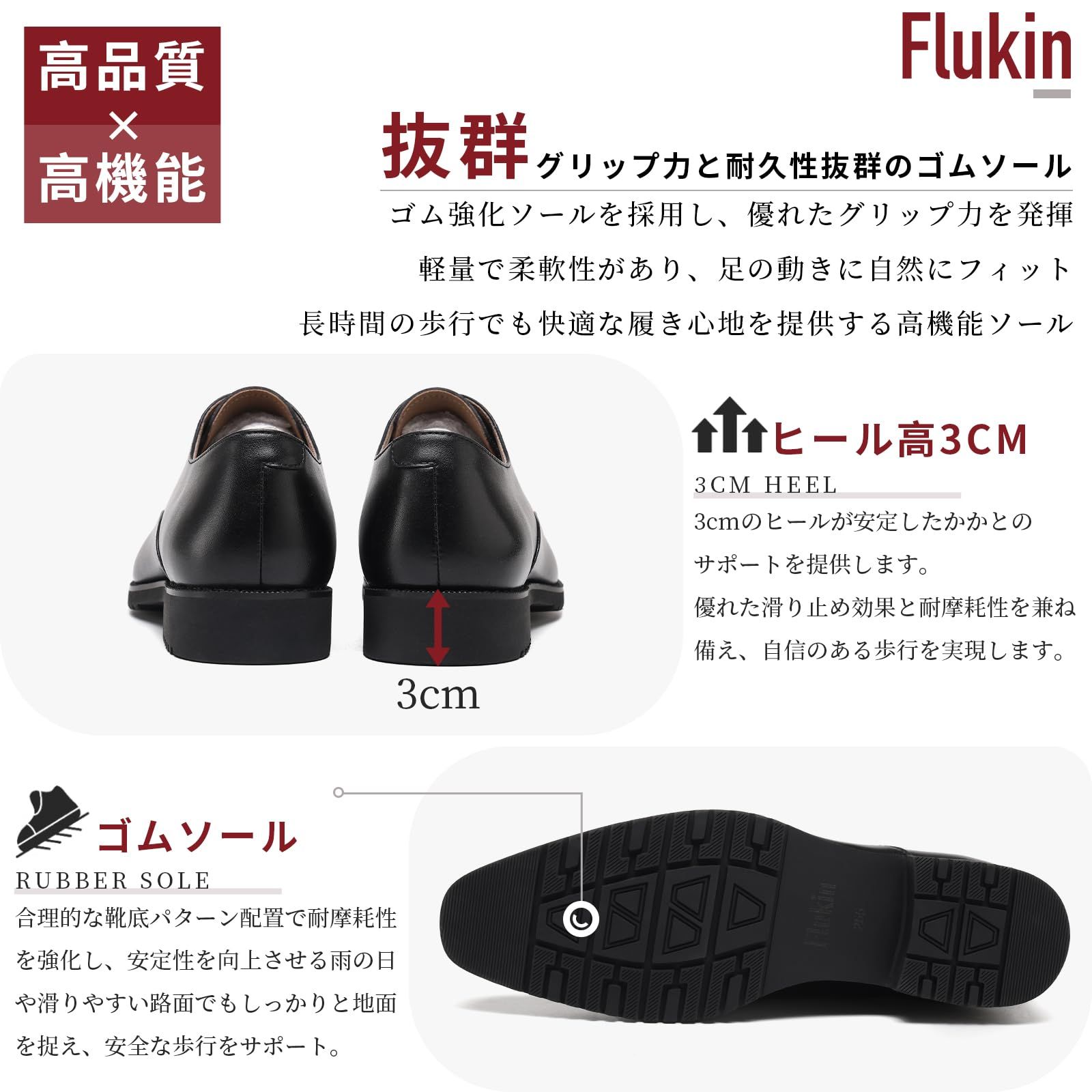 新品 [Flukin] ビジネスシューズ メンズ 防水 通気性 ストレートチップ 内羽根 柔らかい 紳士靴 フォーマル 葬式 面接 入学式 卒業式 オールシーズン 履きやすい 合成皮革 ブラック 26.5cm