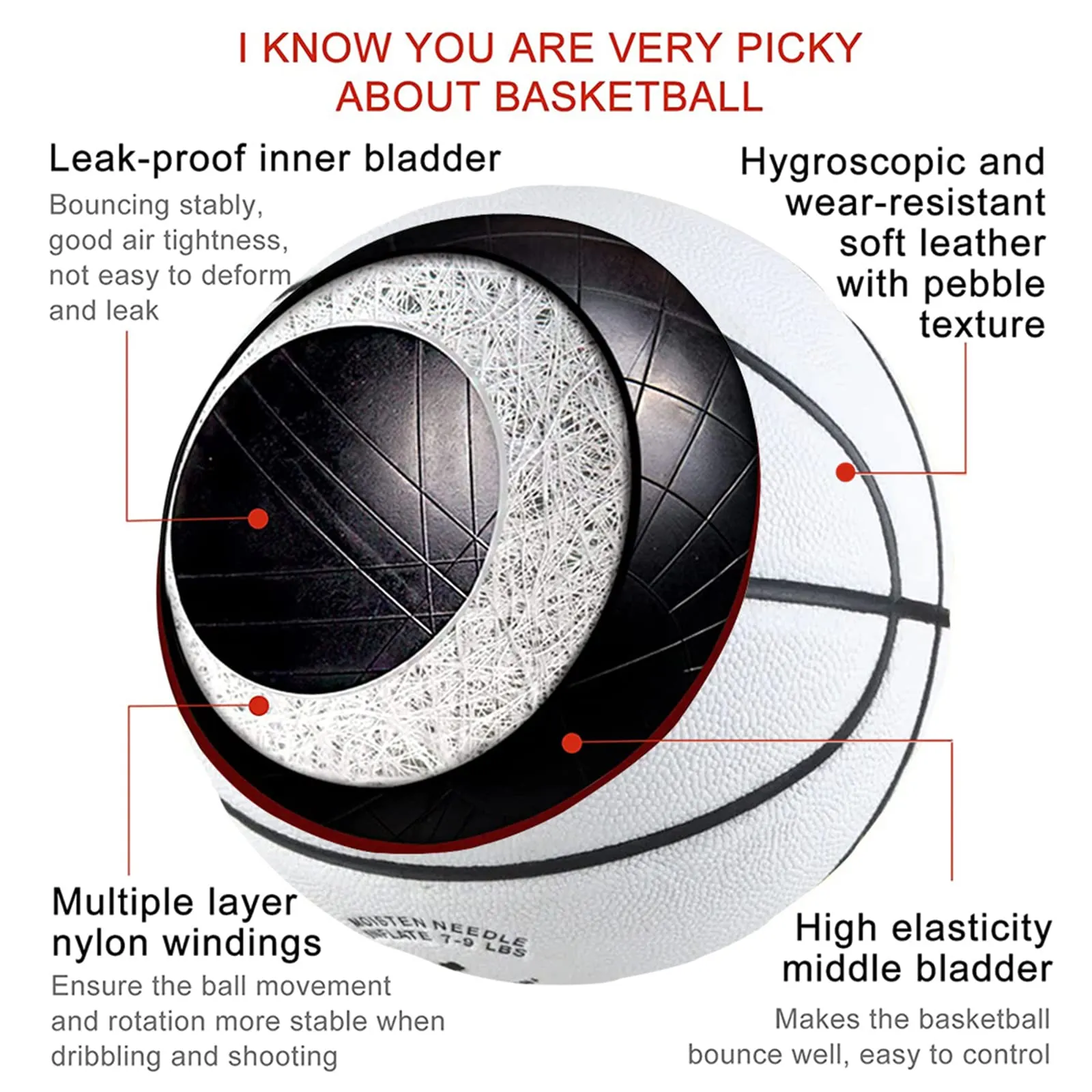 新品 5/6/7スマイルバスケットボール、PUソフトレザーバスケットボール ドリブルとシュート、誕生日クリスマスプレゼント、屋内と屋外の遊びに適しています白No. 7