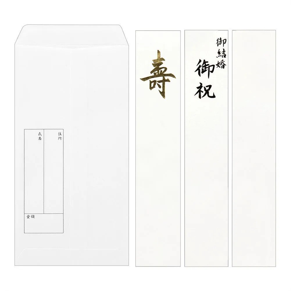 表書きと包み方の解説付(目安金額:2万円から5万円)