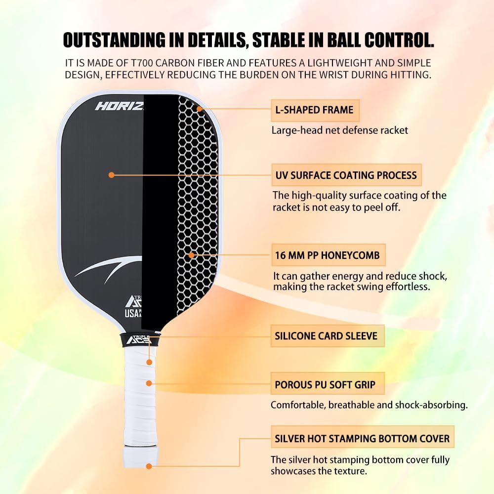 新品 S炭素繊維 Triple Ace ピックルボールパドル 高摩擦拍面 220g 軽量 T-700 カーボン USAPA 認証 プロ級コントロール 滑り止めグリップ 専用ケース付き スポーツギフト/競技用