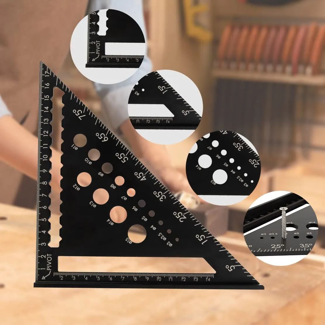 【特価セール】ケガキ工具 45度 木材カット 90度 大工道具 穴あけ 丸鋸定規 アルミ合金 ドリルガイド 18*18cm 木工用 DIY作業に適用 Beslands三角定規