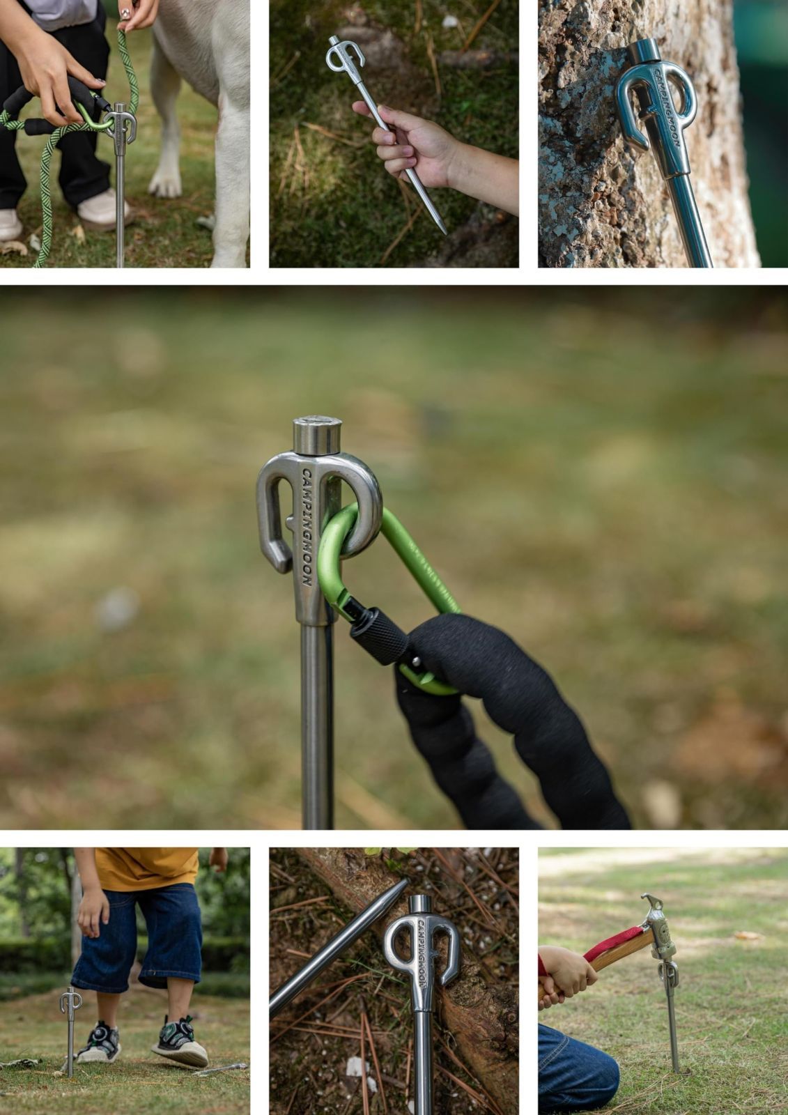 しっかりしたつくりのステンレス製係留具。 ペグは回転するので、ワンちゃんのリードが絡まりません。愛犬とのキャンプやお散歩に! ポールや木がない際に役に立つ、リードの係留用アンカー。