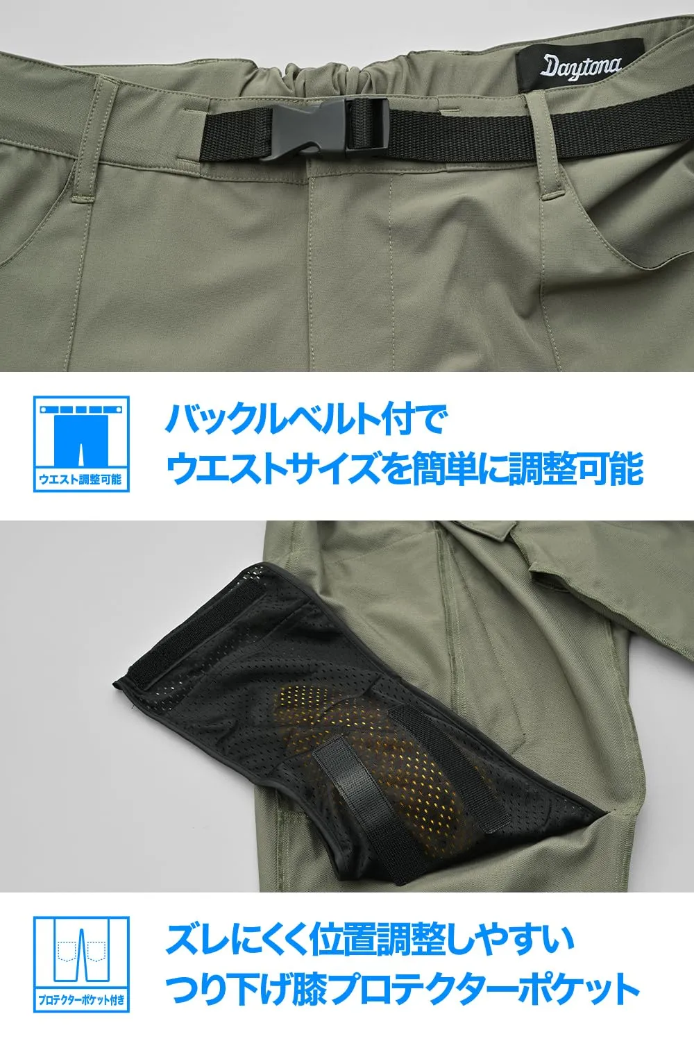 新品 デイトナ(Daytona) バイク ライディングパンツ 夏 CE規格 ソフトプロテクター付属 ストレッチ 撥水 速乾 ドライクールジョガーパンツ DB-012 カーキ 2XLサイズ 64883