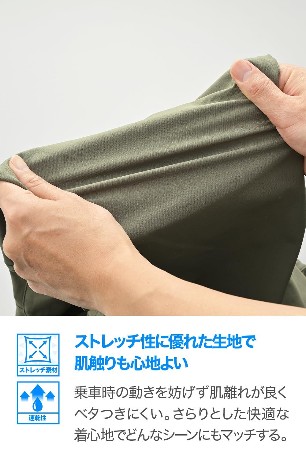 撥水性と速乾性を備えた高機能ストレッチ素材を採用