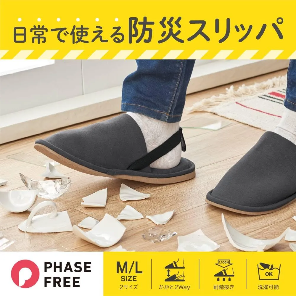 ●「フェーズフリー認証品」で日常でも非常時でも使いやすい 「フェーズフリー」とは、身の回りのモノやサービスを、日常時にも非常時にも役立てることができるという考え方のことです。 防災用品を用意しても、いざという時に使い方が分からずすぐに使えない場合も。 フェーズフリー協会認証品である防災スリッパで、日常生活に防災を取り入れましょう。