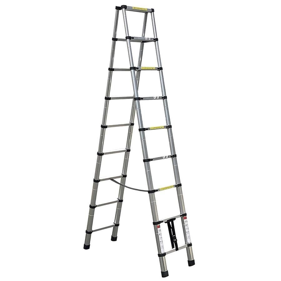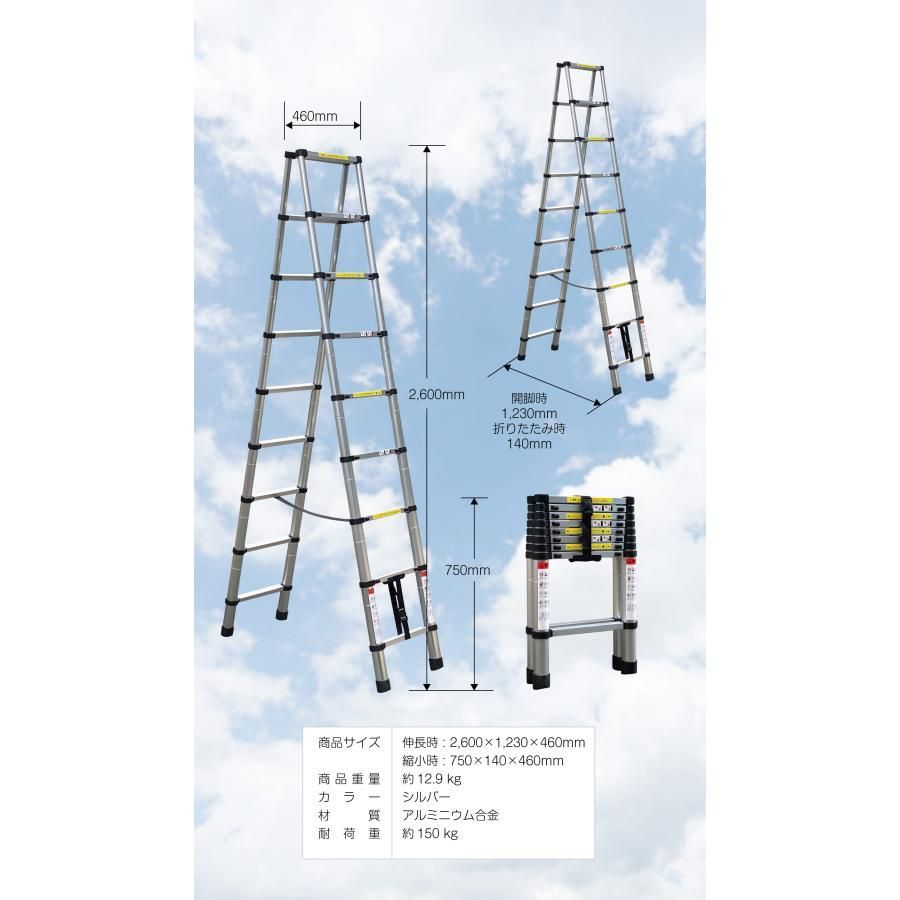 脚立 アルミ 9段 2.6m+2.6m 伸縮 折りたたみ 踏み台 伸縮脚立 梯子 はしご スライド式 安全ロック 耐荷重150kg