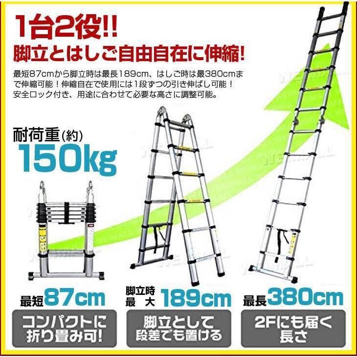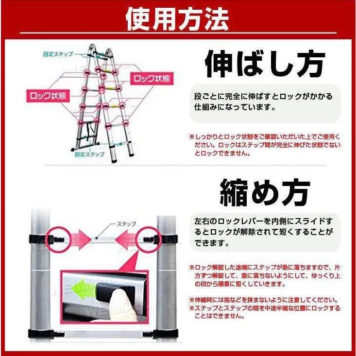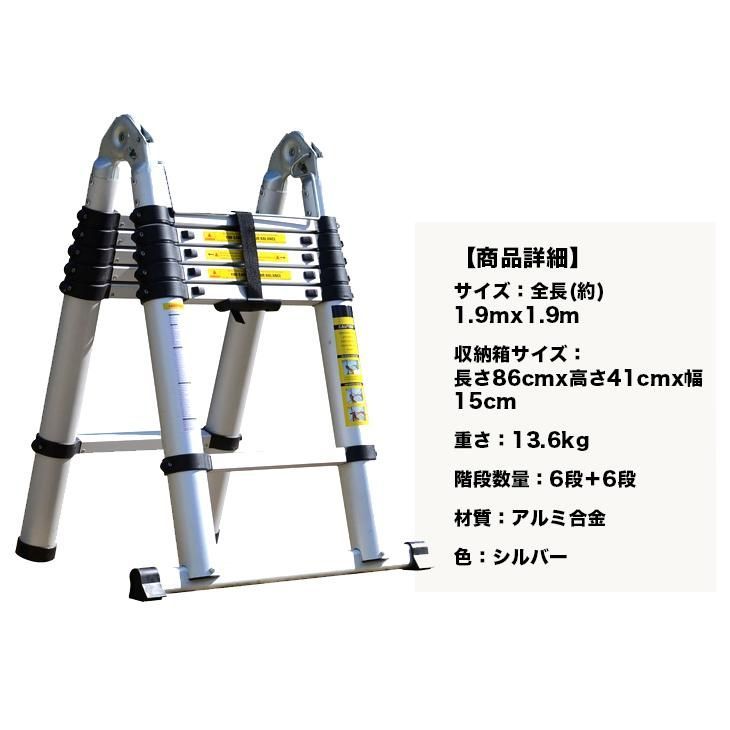 伸縮はしご はしご兼用脚立 脚立 ハシゴ 梯子 アルミ製 伸縮 1.9m+1.9m 脚立 梯子兼用脚立 ハシゴ兼用脚立