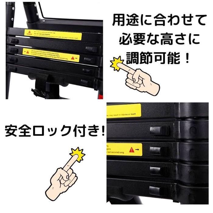 ハシゴ 梯子 はしご 脚立 安全ロック アルミ製 伸縮はしご 伸縮梯子 耐荷重150kg スライド式 折りたたみ
