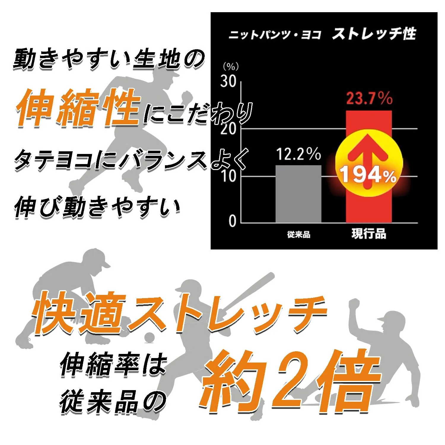 タテ・ヨコにバランスよく伸び、動きやすい。