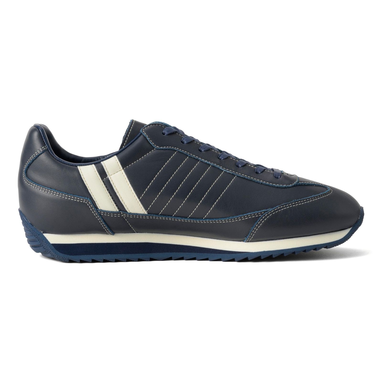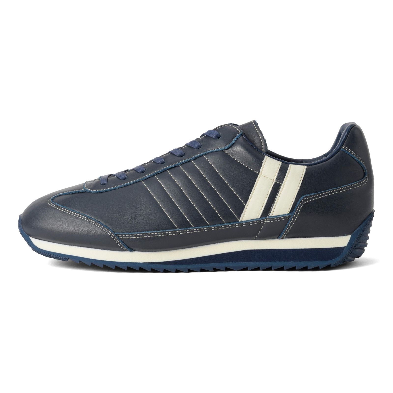 マラレインは、人気ブランドPATRICKの定番モデル「マラソン」をベースに、撥水機能をプラスしたスニーカーです。アッパーには、染色の段階で防水液体剤を投入した防水レザーを採用。さらに、革の表面にも撥水加工を施し、縫製には撥水糸を使用するなど、細部にまで防水へのこだわりが光ります。これにより、急な雨でも安心して快適な履き心地をキープできます。
