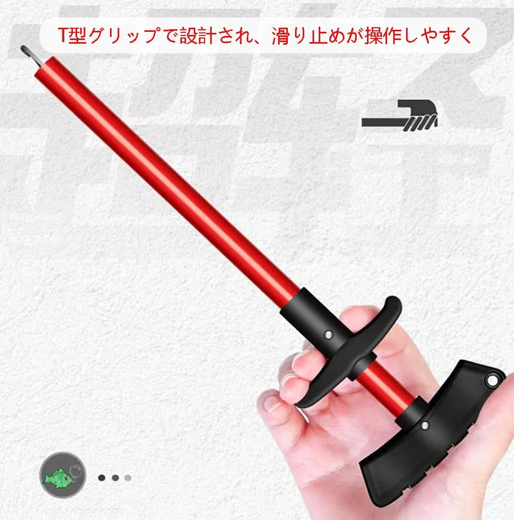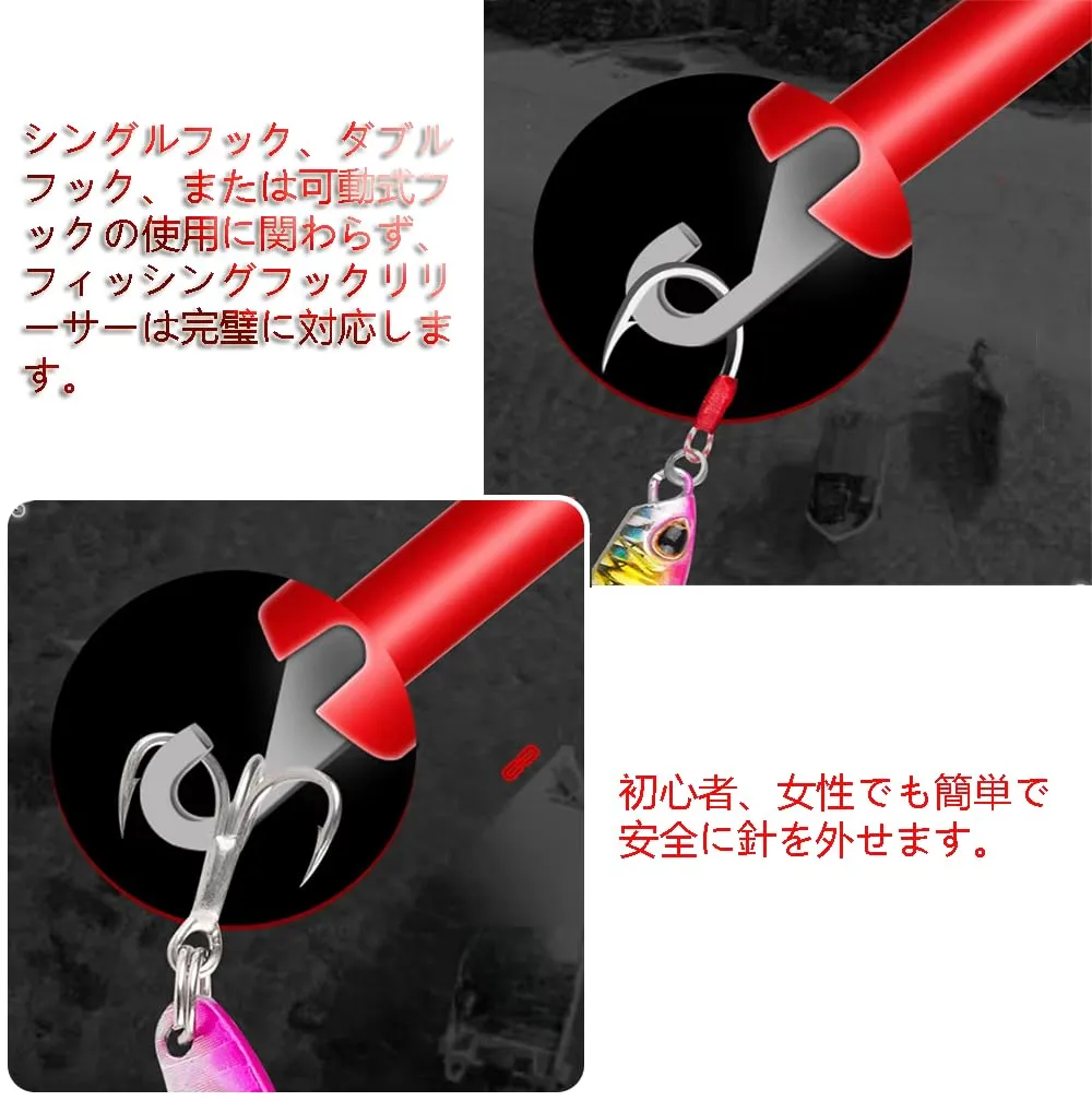T型グリップで設計され、シングルフック、ダブルフック、または可動式フックの使用に関わらず、クイック 針外は完璧に対応します。全種類のフックに対応でき、初心者、女性でも大きい魚を釣った時でも簡単で安全に針を外せます。