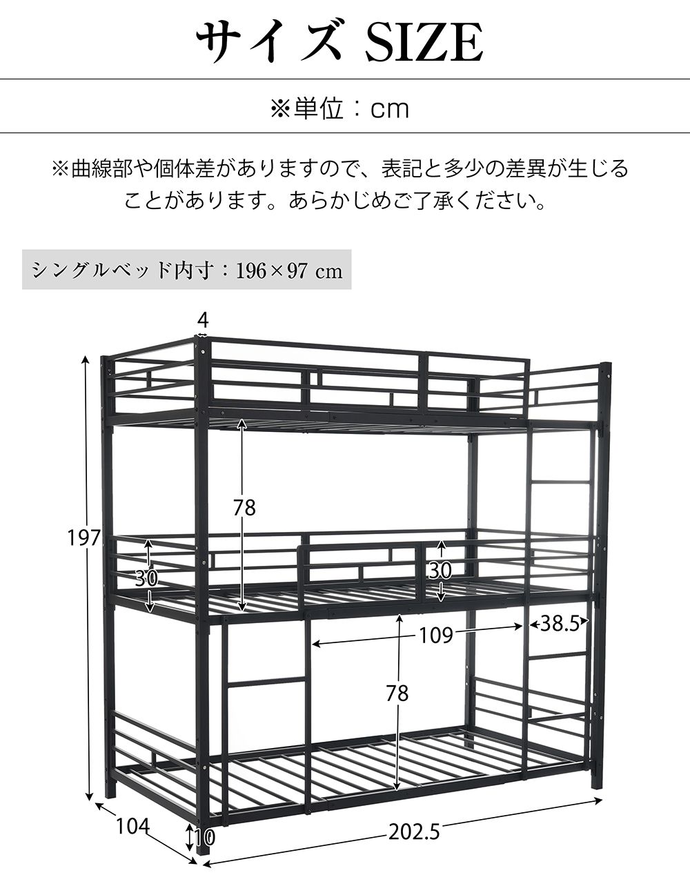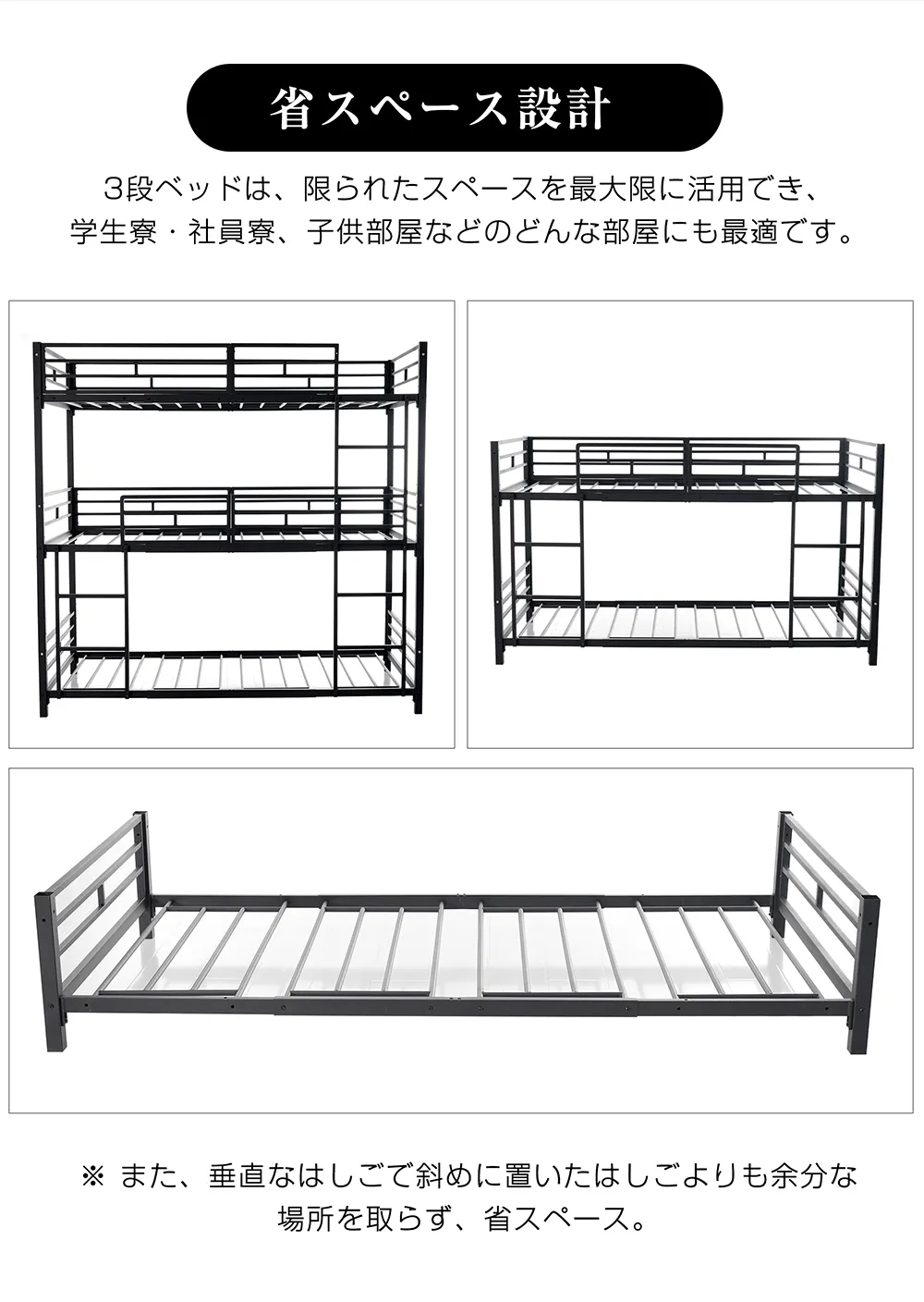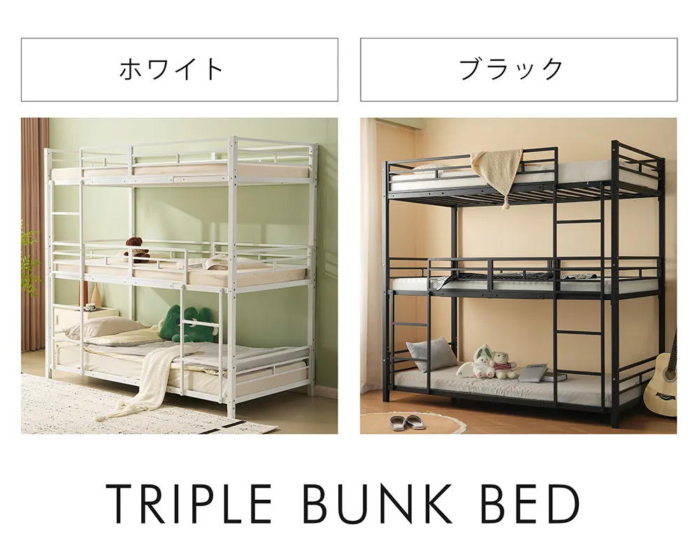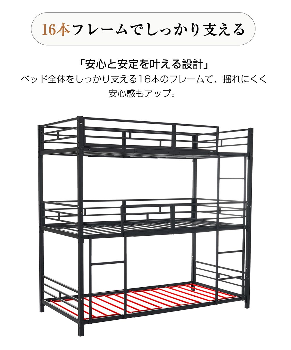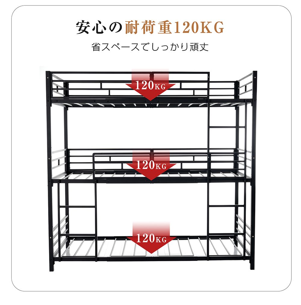 【5月8日入荷予定】三段ベッド 子供 パイプ 三段ベッド 大人用 シングル ベッド パイプベッド 3段ベッド 分離可能 パイプベッド スチールベッド 二段ベッド 新作 コンパクト 省スペース 寮 ブラック ホワイト