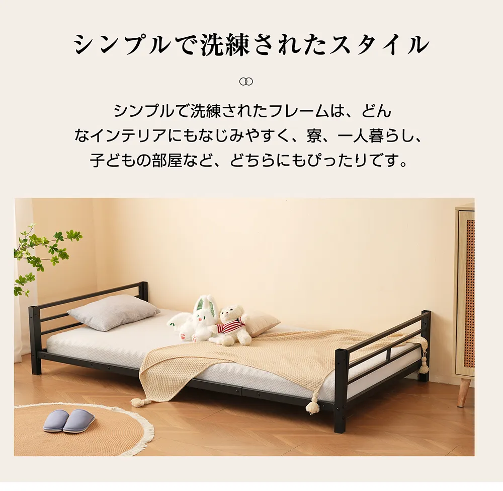 シンプルで洗練されたスタイルシンプルで洗練されたフレームは、どんなインテリアにもなじみやすく、寮、一人暮らし、子どもの部屋など、どちらにもぴったりです。