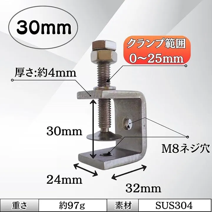 JMAEK DIY コーナークランプ 木工 金具 接着 SUS 固定 溶接 防錆 ずれ防止 C型 小型 30mm 4セット