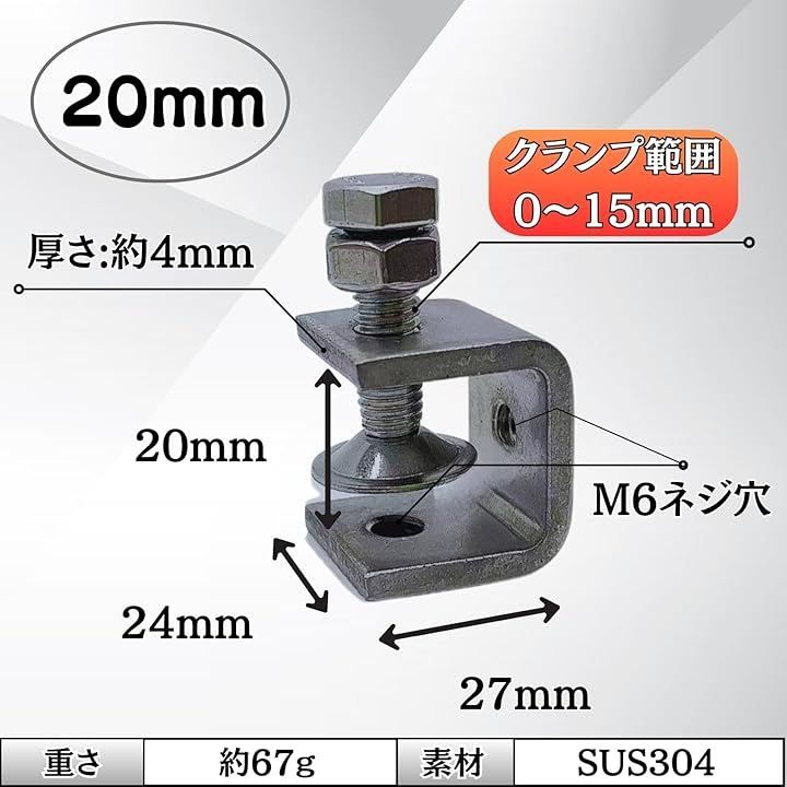 JMAEK DIY コーナークランプ 木工 金具 接着 SUS 固定 溶接 防錆 ずれ防止 C型 小型 20mm 6セット