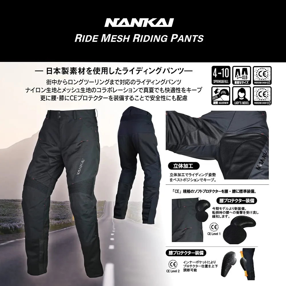 新品 ナンカイ(NANKAI) RIDE メッシュライディングパンツ Size LL ブラック SDW-4140A